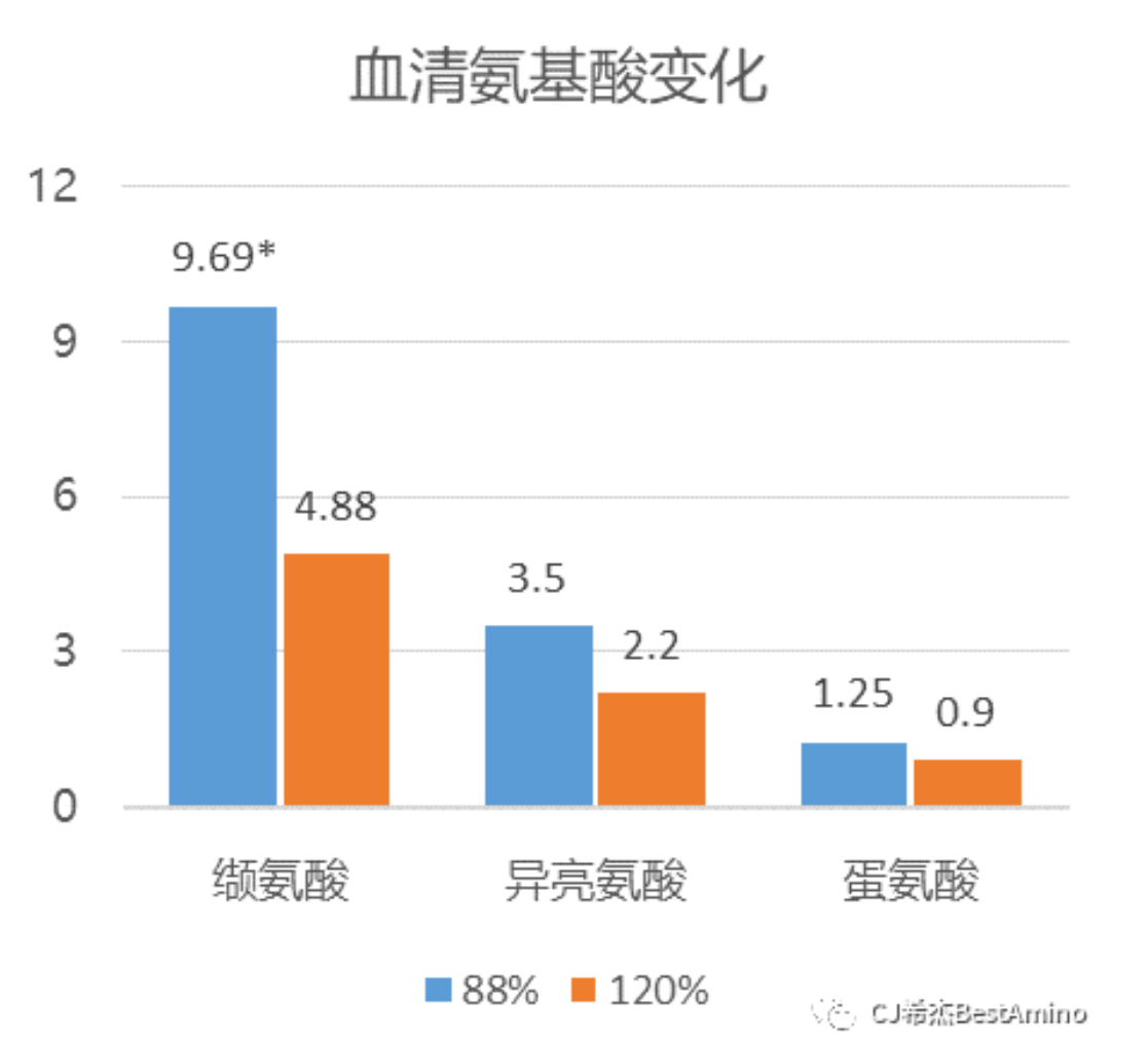 血清氨基酸水平的變化表明,日糧亮氨酸過高或過低均會影響賴氨酸、精氨酸、纈氨酸和異亮氨酸的吸收與利用。玉米、玉米副產(chǎn)品及血粉原料中亮氨酸含量偏高,在配制日糧時(shí)需要注意上述原料的添加比例。在玉米副產(chǎn)品或血粉具有價(jià)格優(yōu)勢的背景下,日糧易出現(xiàn)亮氨酸水平高的情況,此時(shí)需要平衡纈氨酸、異亮氨酸和色氨酸。如有需要,請參看往期公眾號文章。