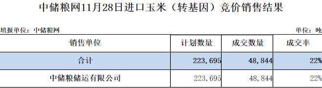 2023年11月28日中儲糧網(wǎng)進口玉米(轉(zhuǎn)基因)競價銷售結(jié)果