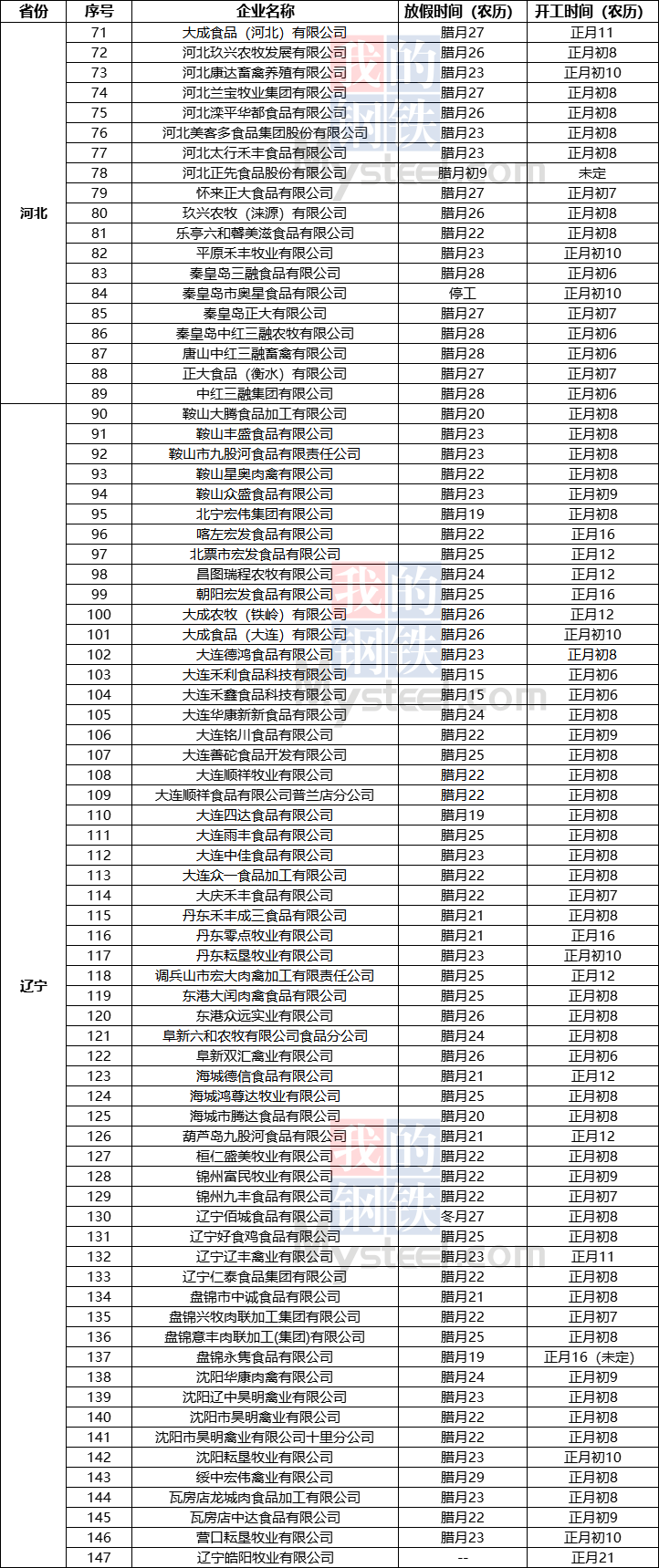 ??2024年全國206家白羽肉雞屠宰企業(yè)春節(jié)放假及開工時間統(tǒng)計表圖片