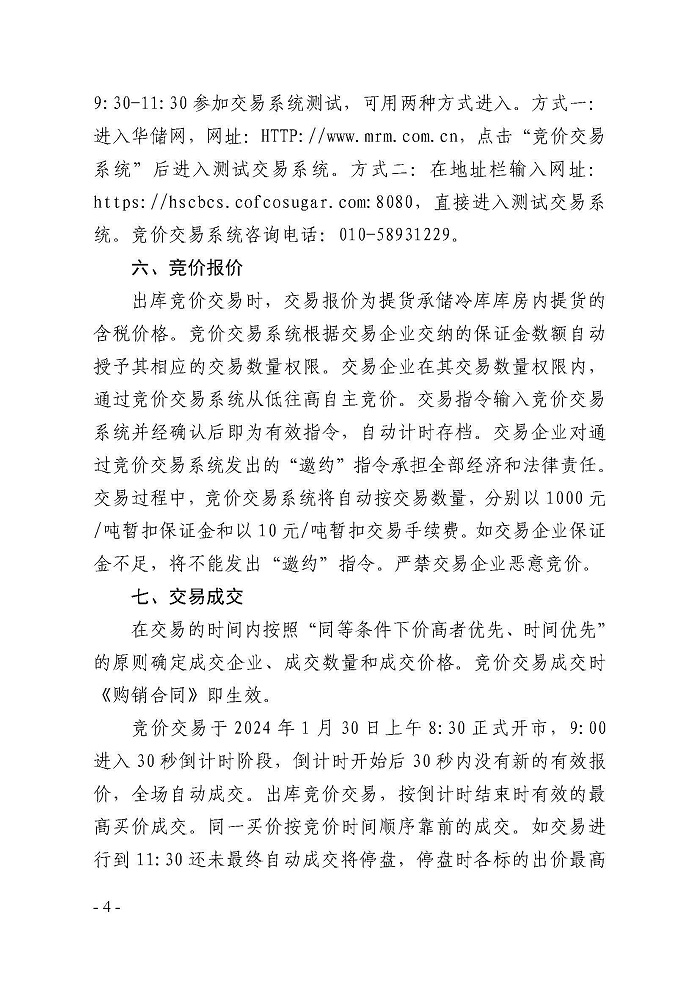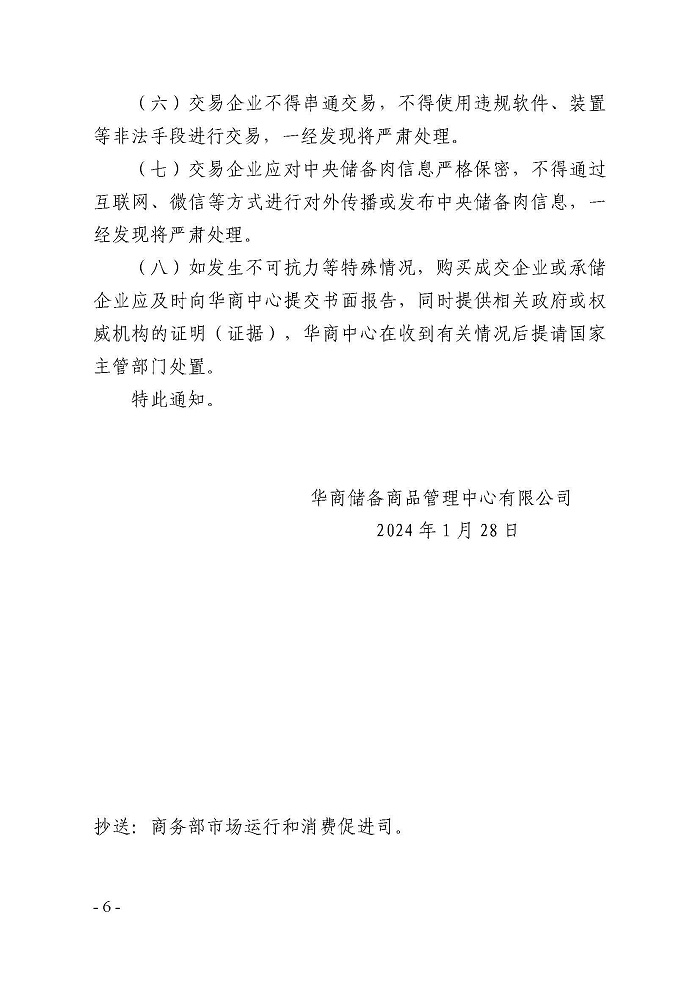 華儲(chǔ)網(wǎng)2月27日發(fā)布關(guān)于2024年2月28日和29日中央儲(chǔ)備凍豬肉輪換出庫競價(jià)交易有關(guān)事項(xiàng)的通知。本次出庫競價(jià)交易掛牌0.91萬噸,以實(shí)際掛牌為準(zhǔn)。交易時(shí)間為2024年2月28日上午8:30-11:30。如果2024年2月28日上午有未成交的標(biāo)的,則在2月29日上午對未成交的標(biāo)的重新掛牌出庫交易。