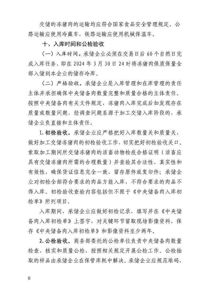 華儲(chǔ)網(wǎng)2月27日發(fā)布關(guān)于2024年2月28日和29日中央儲(chǔ)備凍豬肉輪換收儲(chǔ)競(jìng)價(jià)交易有關(guān)事項(xiàng)的通知。本次收儲(chǔ)掛牌競(jìng)價(jià)交易3.31萬(wàn)噸,交易時(shí)間為2024年2月28日下午13:30-16:30。如果2024年2月28日下午有未成交的標(biāo)的,則在2月29日下午13:30-16:30對(duì)未成交的標(biāo)的重新掛牌收儲(chǔ)交易。