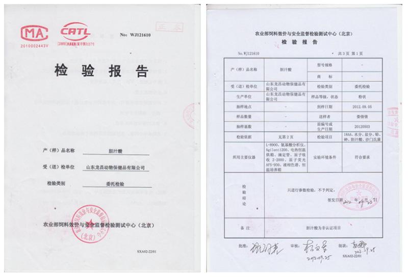 新國標(biāo)規(guī)定須使用高效液相色譜法檢測膽汁酸成分和含量。目前龍昌動保正是采用液相色譜-熒光法進(jìn)行檢測,并得到國家質(zhì)量監(jiān)督檢驗(yàn)測試中心的驗(yàn)證,可確保原粉中是單純的膽汁酸組分,并能精準(zhǔn)檢測豬去氧膽酸和豬膽酸含量≥77%,鵝去氧膽酸≥17%。