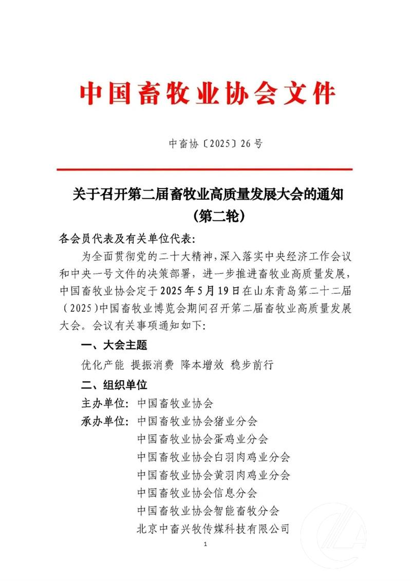 關于召開第二屆畜牧業(yè)高質量發(fā)展大會的通知(第二輪)