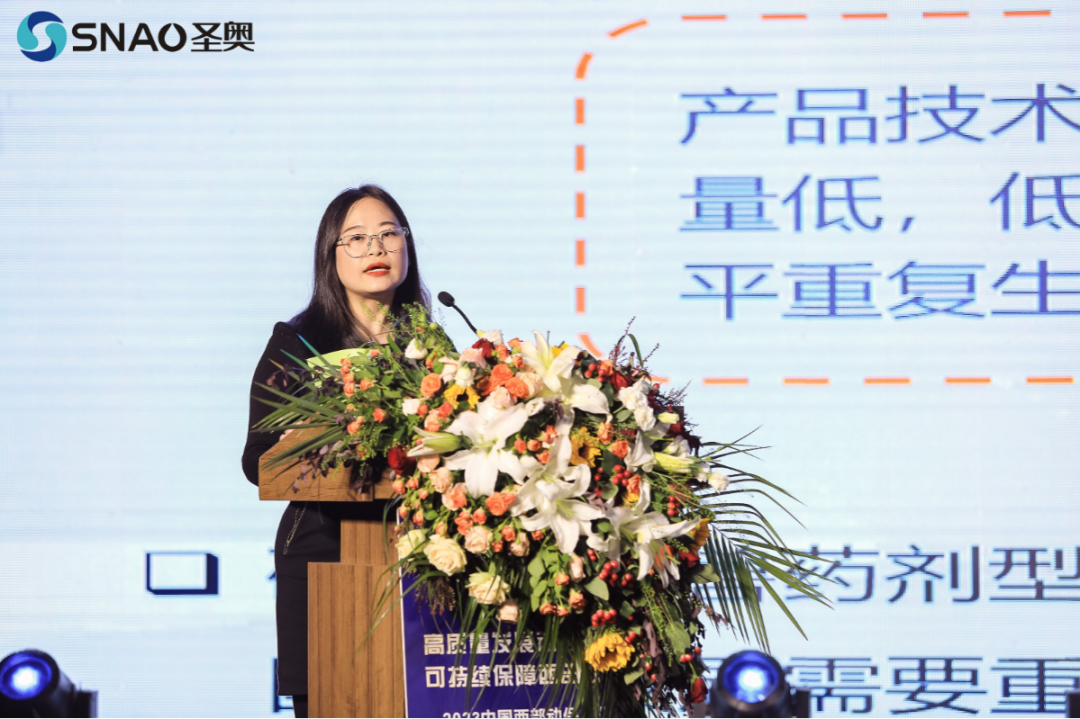 陜西圣奧動(dòng)物藥業(yè)有限公司研發(fā)中心主任劉康以《注射類動(dòng)保產(chǎn)品創(chuàng)新發(fā)展之路》為主題作分享報(bào)告。他介紹了圣奧藥業(yè)的整體概況,分別從包裝形式、生產(chǎn)工藝、產(chǎn)品劑型幾個(gè)方面的創(chuàng)新之路展開(kāi)分享與交流。