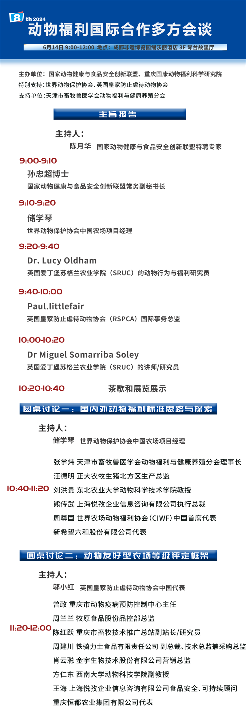 2024年6月,一場盛會(huì)將在成都·非遺博覽園緹沃麗酒店隆重舉行,邀請(qǐng)了150+行業(yè)大咖到場分享,2024年第八屆中國動(dòng)物健康與食品安全大會(huì)全體大會(huì)及十余場論壇活動(dòng)即將精彩綻放。
