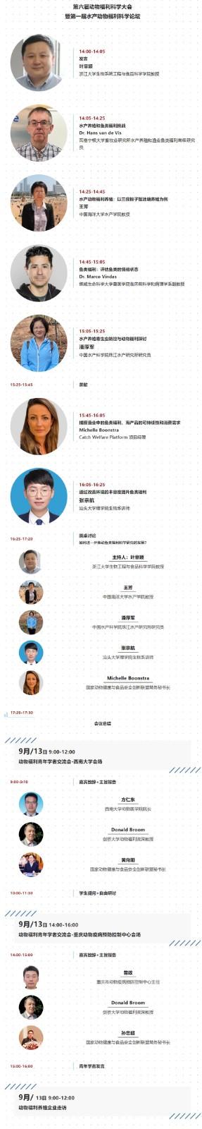 9月12日 13:30-18:00第六屆中國(guó)動(dòng)物福利科學(xué)大會(huì) 平行論壇,分為: